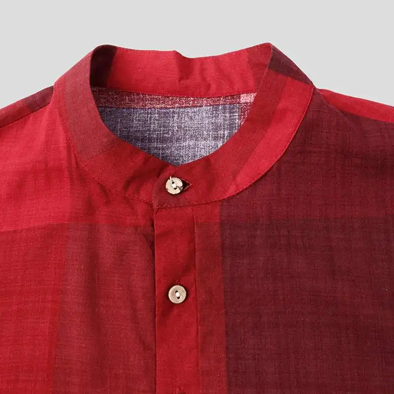 Men Tunic Muslim Men Islamic Kaftan Long Sleeve Stand Collar Plaid Vintage Casual Robes Streetwear Cotton Caftan Men Jubba Thobe