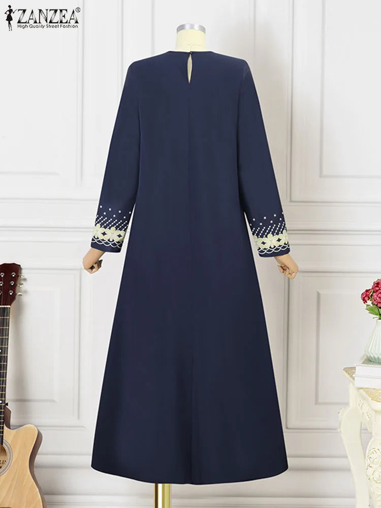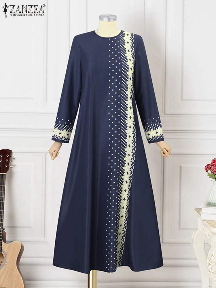 Dress Women Vintage Floral Printed Maxi Dress Autumn Long Sleeve Kaftan Muslim Sundress Robe Femme Ramadan Islamic Clothing