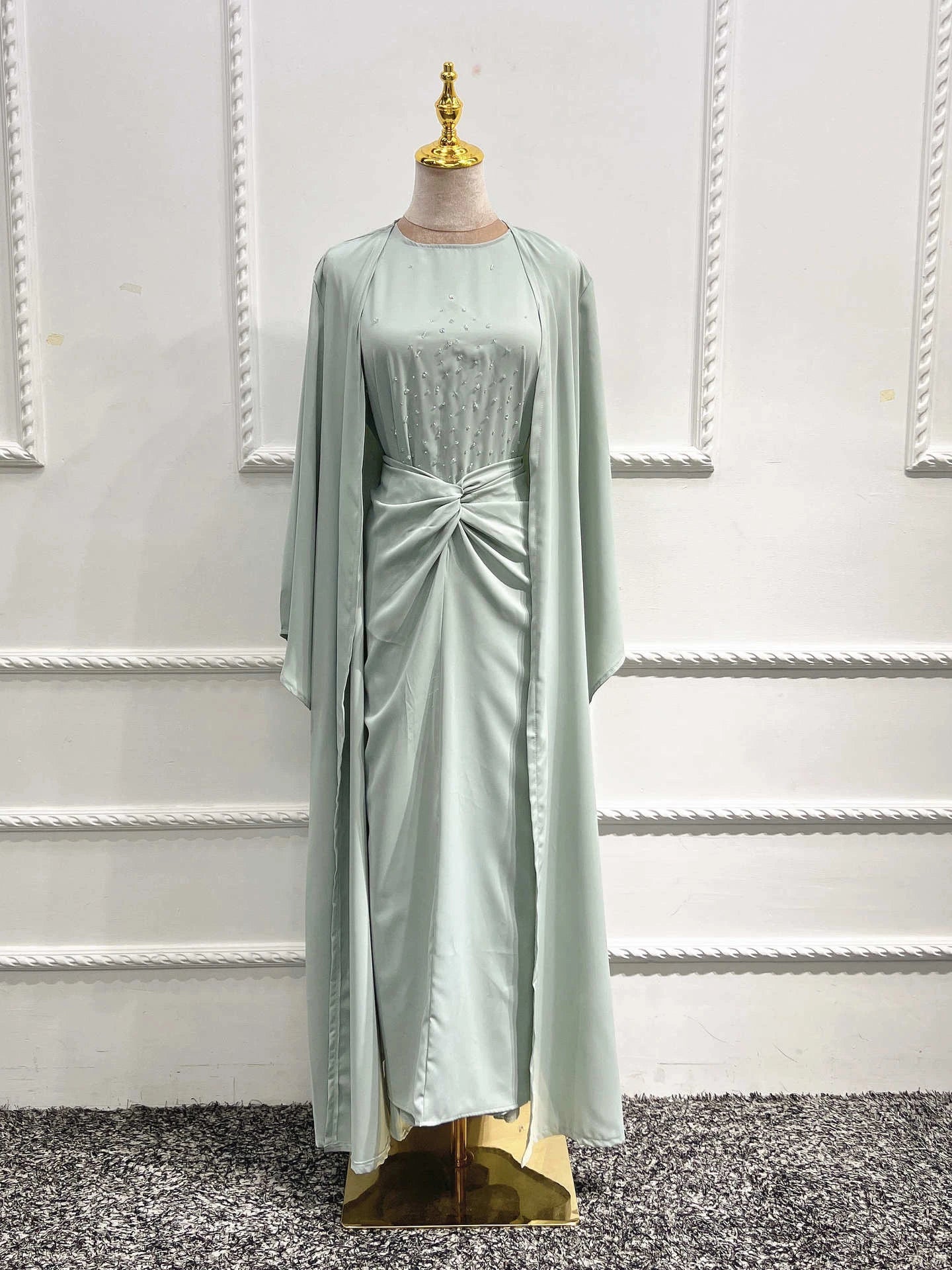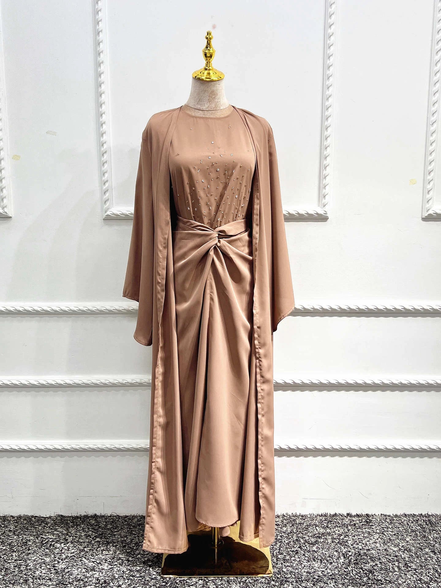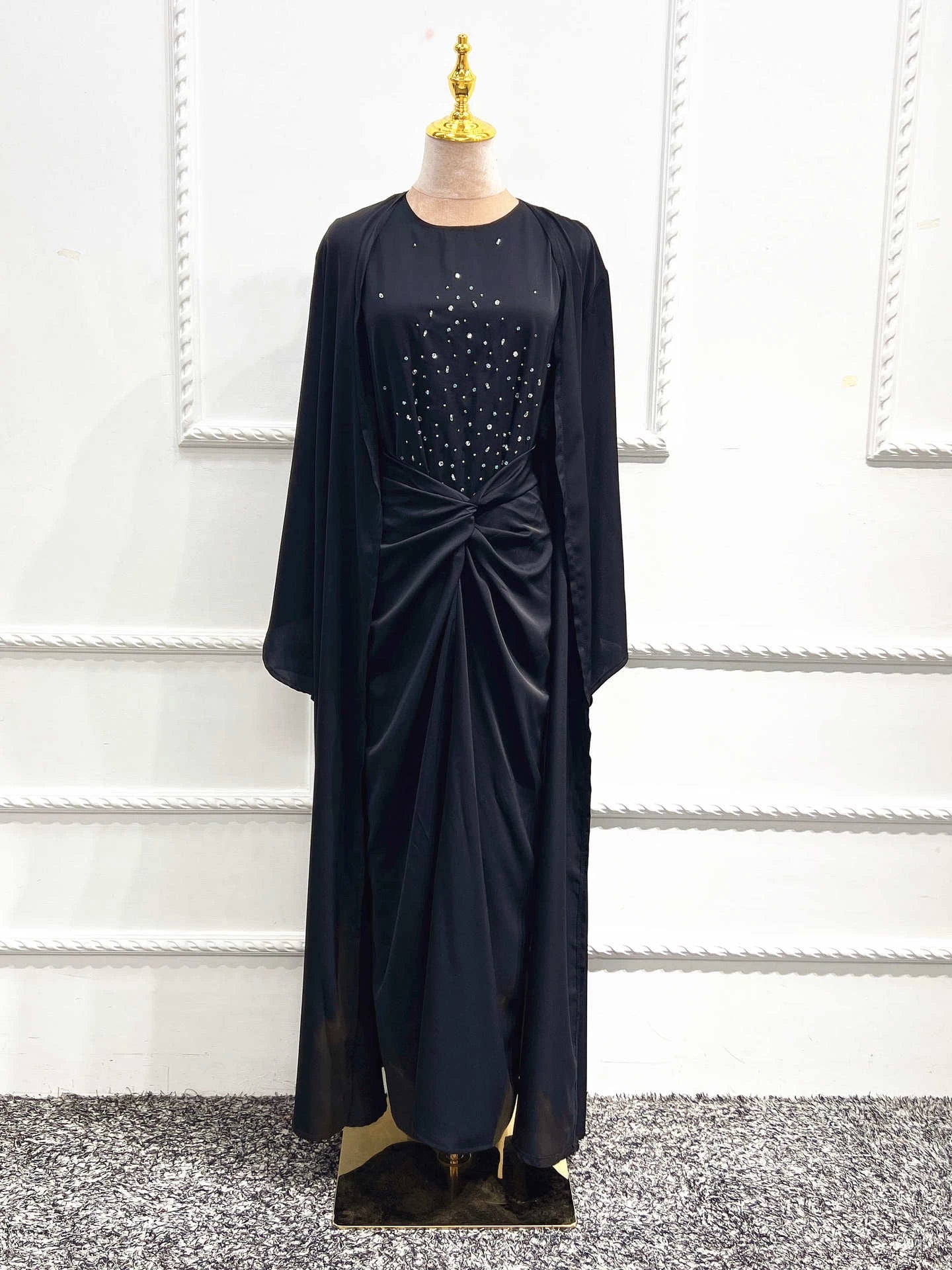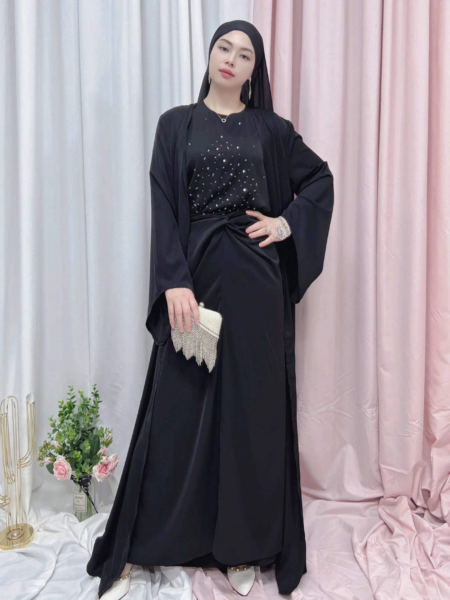 SPECIFICATIONSBrand Name: wulendMaterial: PolyesterDepartment Name: AdultStyle: CasualElasticity: Slight StrechOrigin: Mainland ChinaCN: GuangdongItem Type: Muslim SetsDecoration: Diamonds This three-piece set include...
