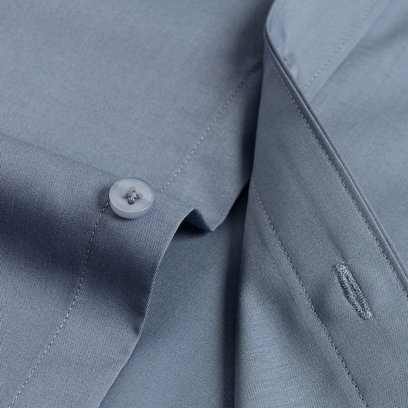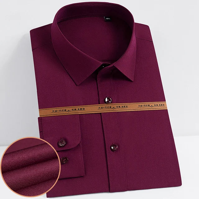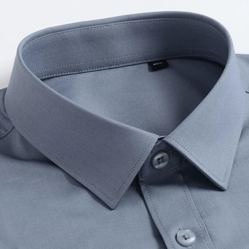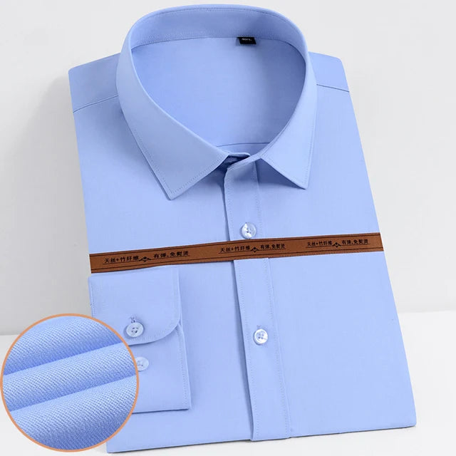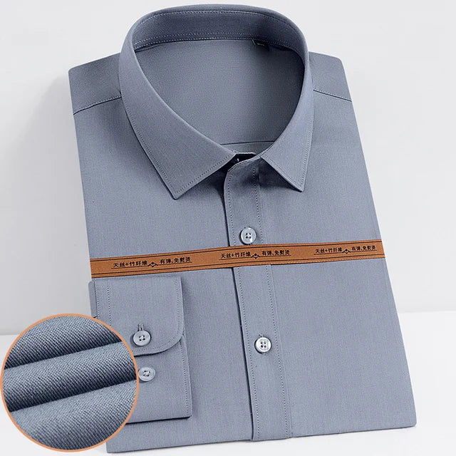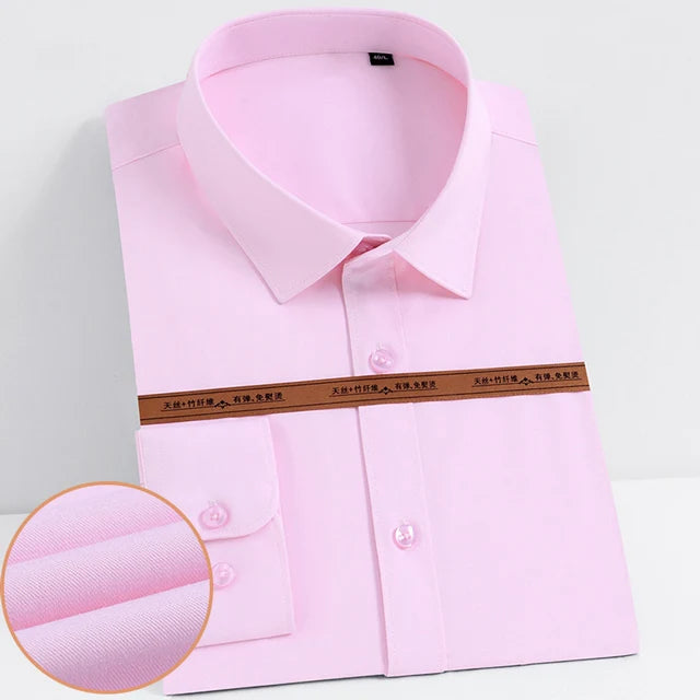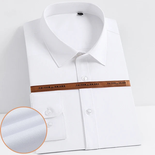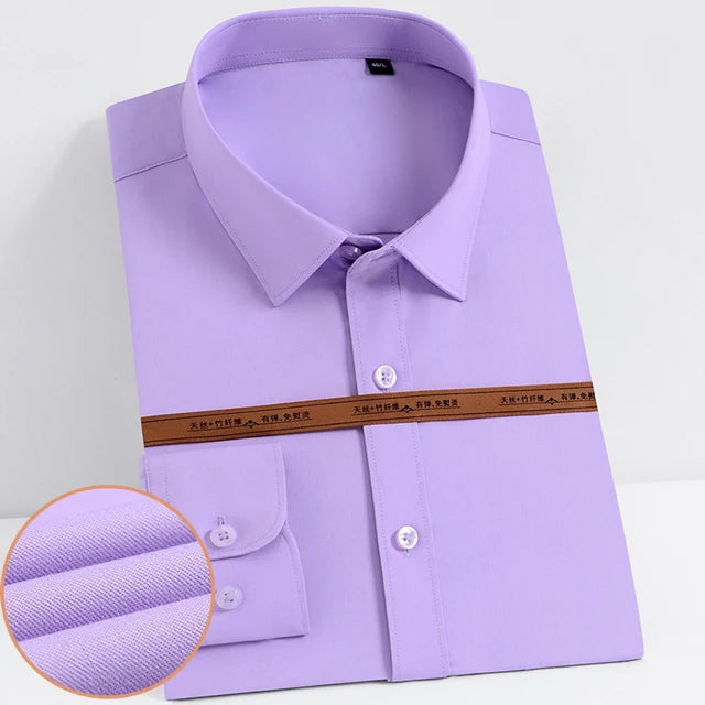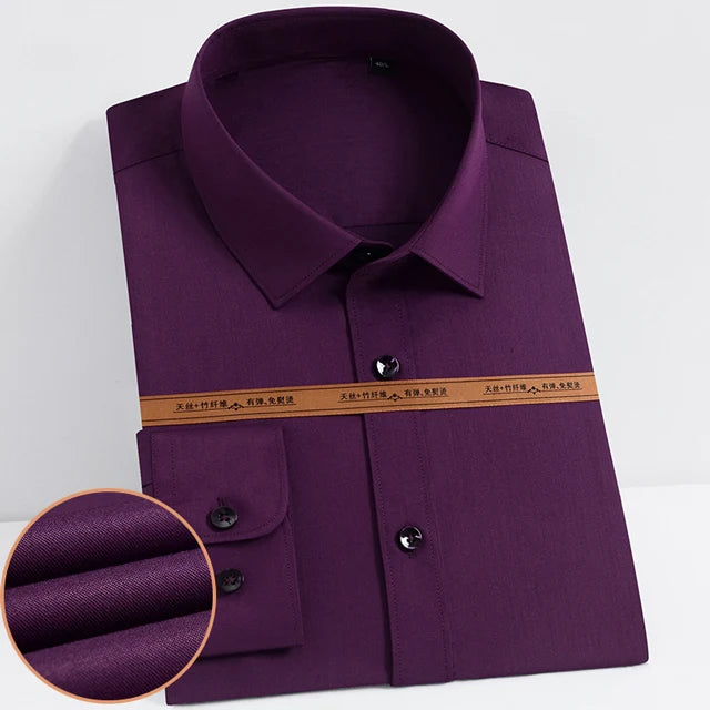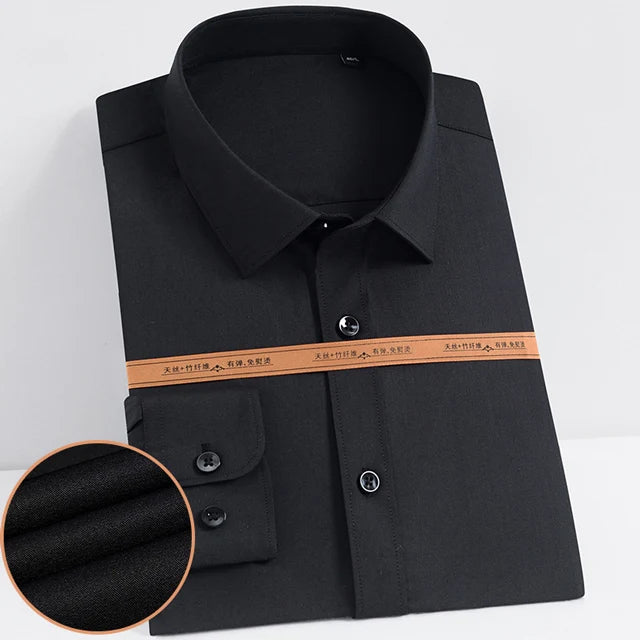 Men's Fashion Bamboo Fiber Long Sleeve Dress Shirts Pocket-less Design Standard-fit Formal Business Casual Easy Care Shirt