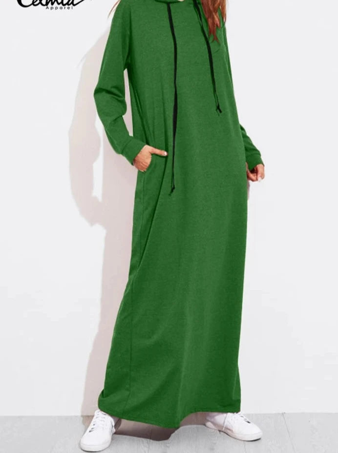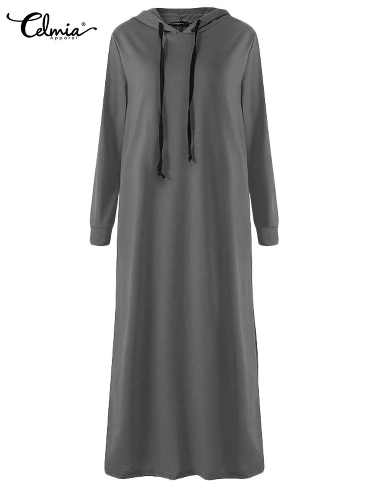 Dress Celmia 2023 Women Maxi Dress Autumn Fashion Vintage Hooded Dress Sweatshirt Winter Long Sleeve Hoodies Winter Vestido Robe Femme